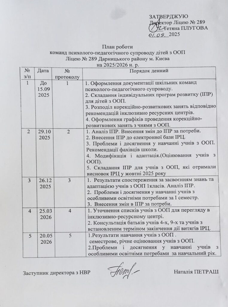 Розклад корекційно-розвиткових занять учнів з особливими освітніми потребами на 2025-2026н. р.
