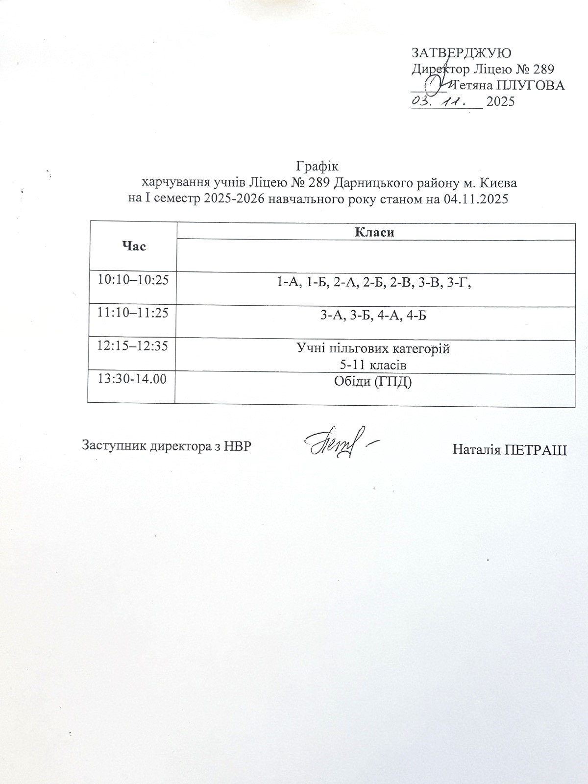 Розклад уроків та дзвінків